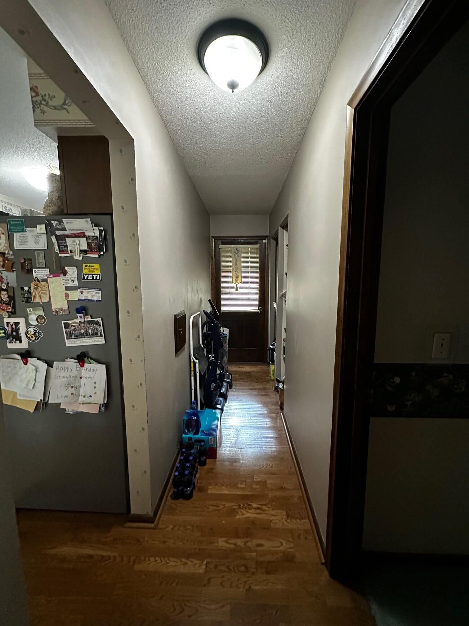 The doorway was moved to the left more to allow the fridge and range to run along the back wall where the closet used to be.