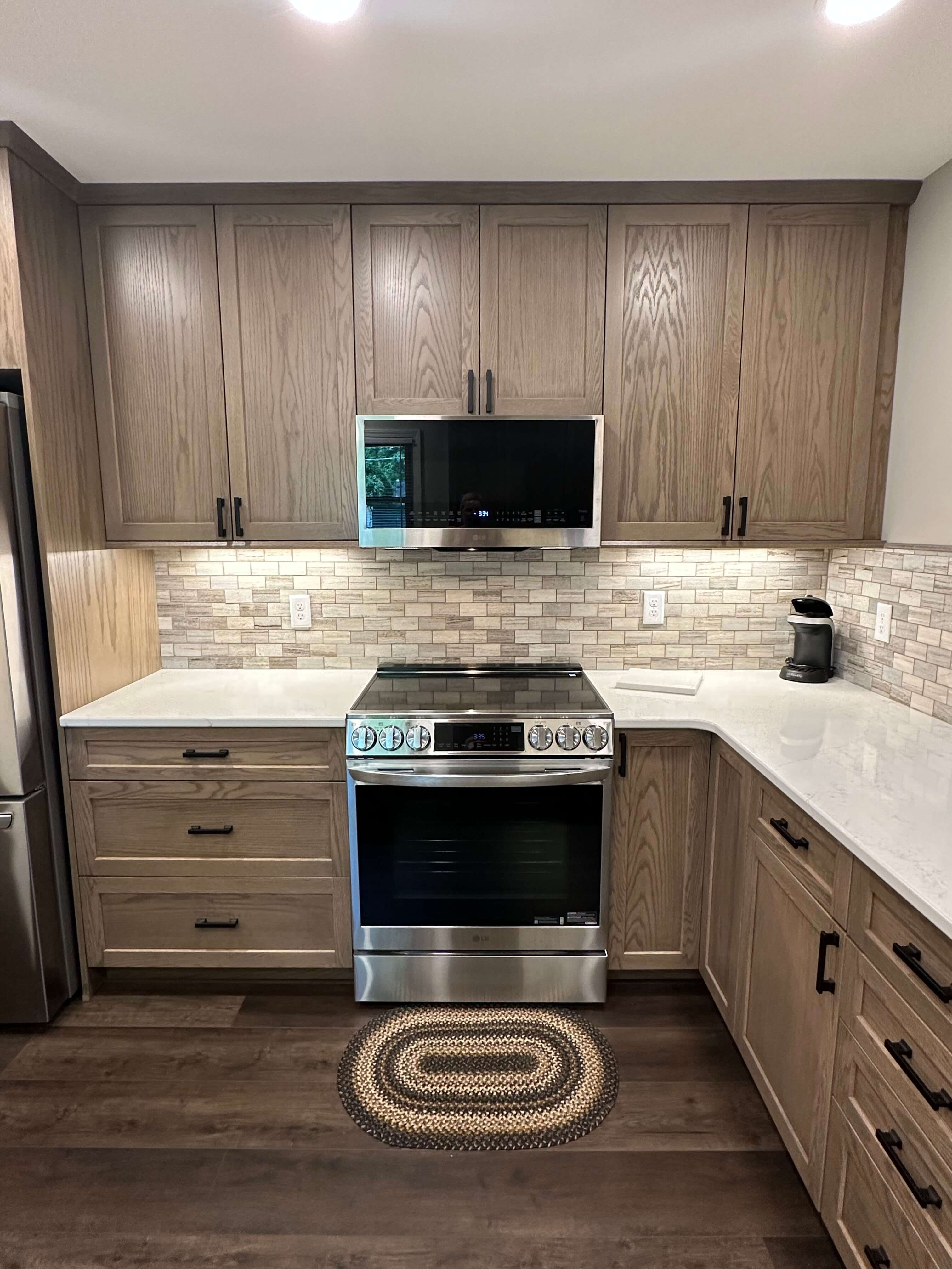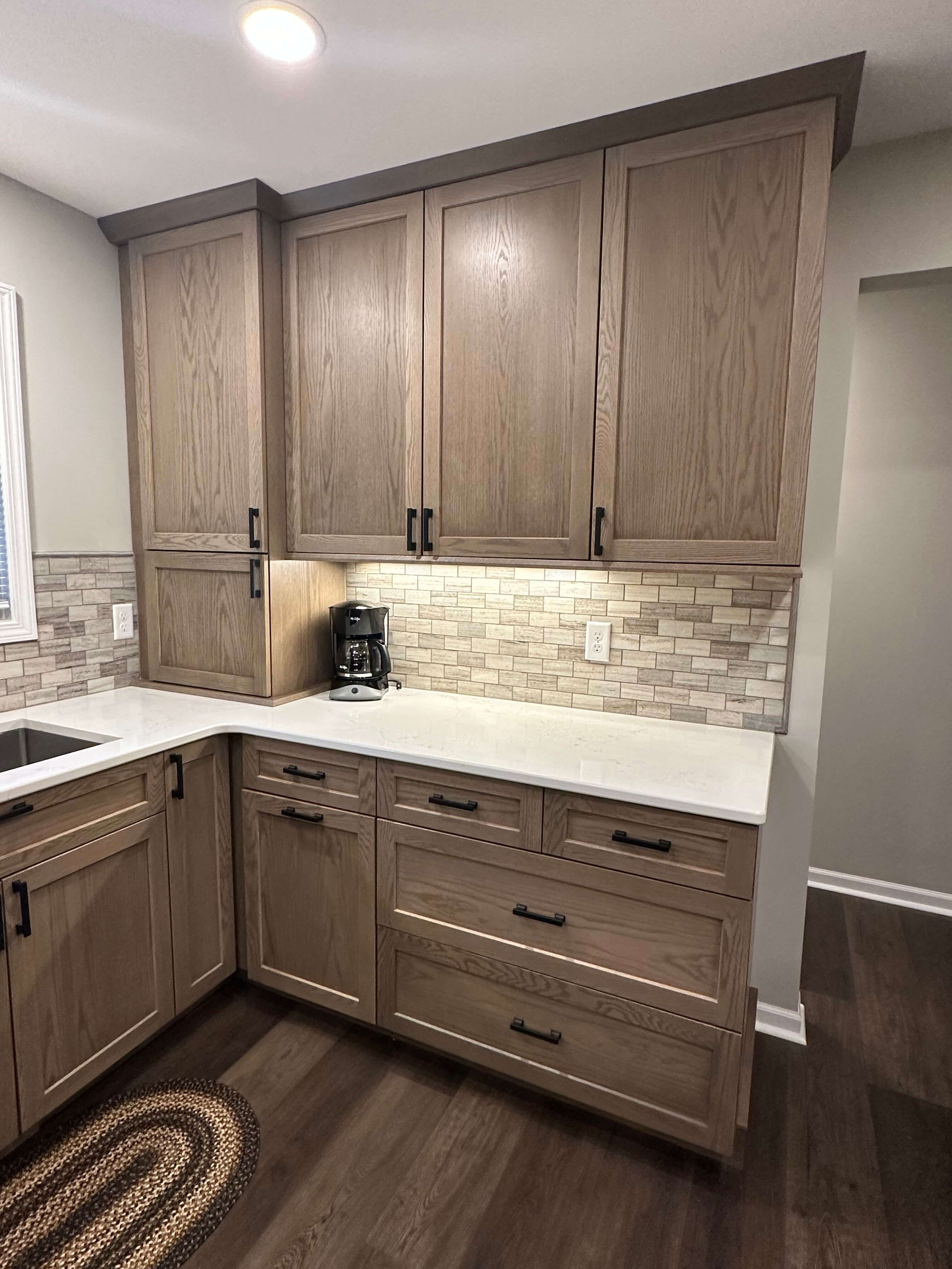 Gwen absolutely loves her new kitchen! “I have so much storage I can’t even fill up all the cabinets,” she remarked when I visited to take pictures. She still had a few boxes to put away, but between the new cabinets and laundry room, she is not lacking a place for anything. Her family and friends are thrilled with how everything turned out, not to mention how happy she is that she took the project on and went with it. “Everything is so open and bright, and I’m so happy for the help you and Neil provided! I absolutely love my new kitchen!”