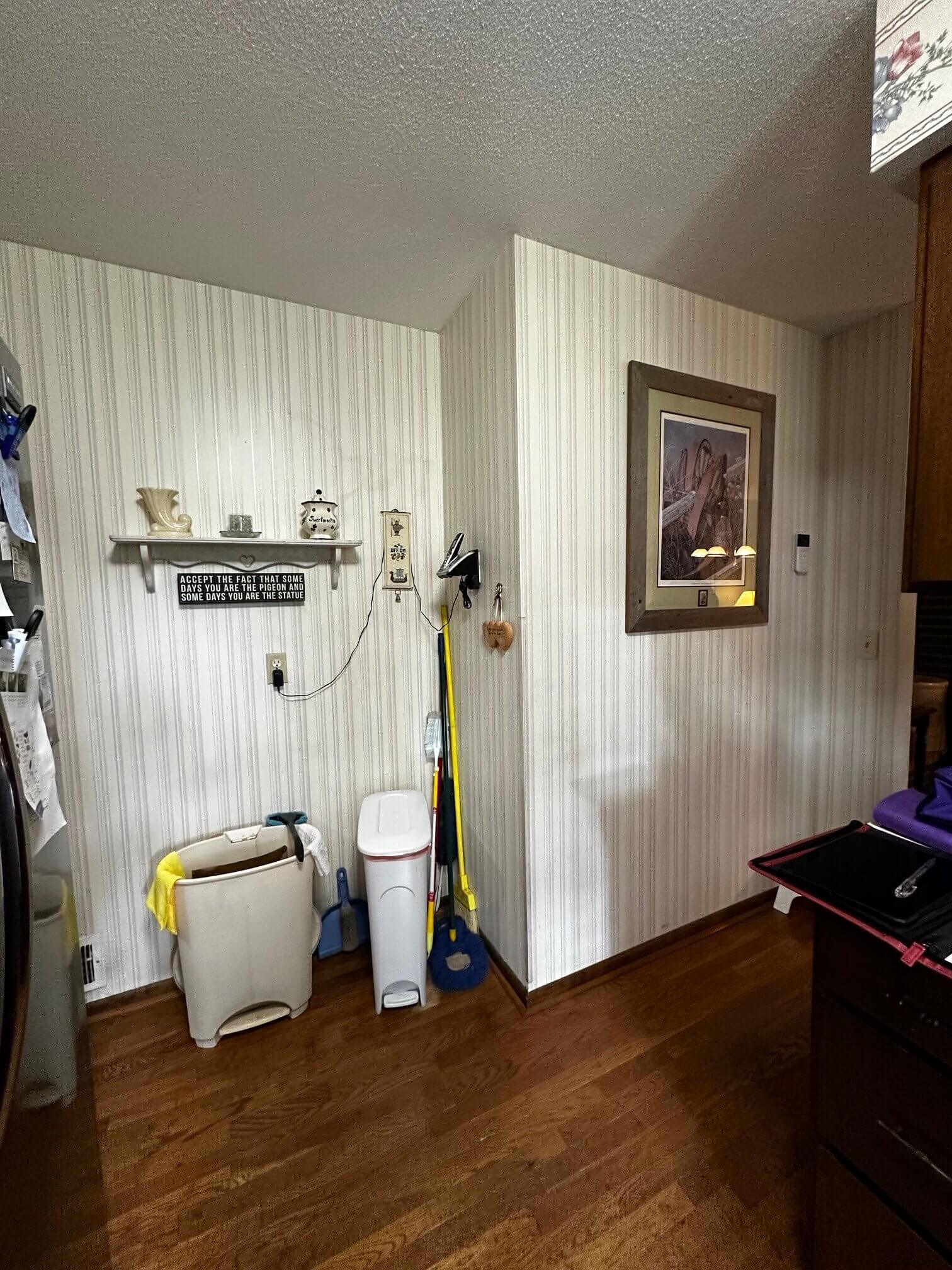 The back hall that was transformed into a small laundry room was a game-changer. It allowed Gwen to have a small stackable washer and dryer on the main living level without having to sacrifice the office in the spare bedroom. Additional base cabinets were used in the space for extra storage, and there is room for open shelving to be installed at a later date if needed. Plus, she still has the full size laundry set in the basement for larger loads like bedding and towels.